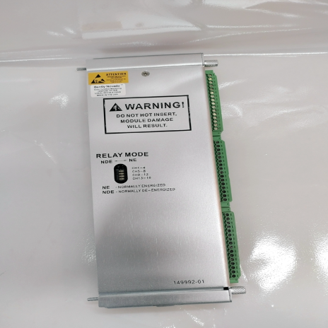 Each relay used on a 16-channel relay module includes "alarm drive logic". Programmed alarm driver logic adopts with or logic, and may use alarm inputs (alarm and danger status), no-OK, or any combination of any monitor channel or monitor channel from an individual ppl rack. The user uses 3500 rack configuration software to program this alarm driver to meet the specific needs of the application.