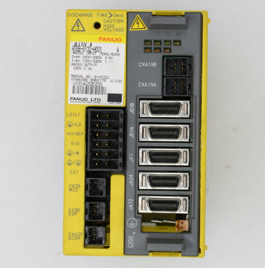 Fanuc伺服放大器βi系列SVM A06B-6130-H002是由三个基本模块和两个可选模块组成的系统的一部分。配置包括伺服放大器、交流线路滤波器、连接器、保险丝和电源变压器模块。通过I/O链路的128 DI和128 DO连接到CNC或类似的主机模块。伺服放大器主机使用梯形程序向伺服放大器单元发送命令。该接口监控状态。指令命令发送到伺服放大器模块,响应命令发送到主机单元,如CNC。
