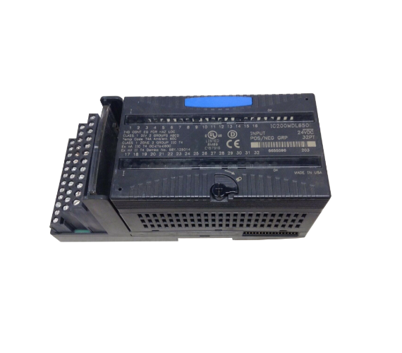 The IC200MDL650 is a 32-point vertical input module in the VersaMax I/O family, formerly manufactured by GE Intelligent Platforms and now owned by Emerson Automation. The module has thirty-two (32) input channels, supports positive and negative logic wiring configuration, is divided into four (4) groups, each group of eight (8) channels. Each input channel of the module has a rated voltage of 24 VDC, an input signal range of 0-30 VDC, and an input current of 2.0-5.5 mA. The backplane current consumption of the module is 50 mA.