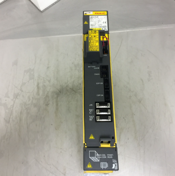 The aiSV-80/80 is a 90mm wide servo module with an internal cooling fan and an external fan on an external radiator. As a two-axis servo module of the ai series, it comes with multiple combinations of many other servo and spindle amplifiers, depending on the number of axes and spines driving the machine. The driver has a rated output of 19A amperes per shaft; Contains two 100 amp transistor modules. It is equipped with patch board A16B-2203-0673 and FSSB control card A16B-2100-074x and later A16B-2101-004x. No board is supplied individually, but transistors, battery packs, fuses, and internal fans are.