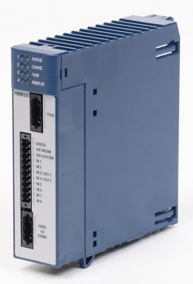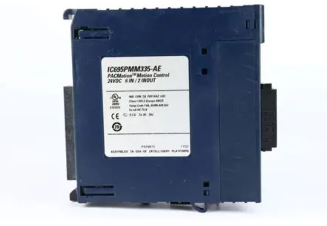 The IC695PMM335 has an optical fiber FSSB port and optical fiber I/O communication installed on the front panel of the module. It also features panel I/O terminals that accommodate four (4) 24VDC, optically isolated, universal inputs and can be configured as source/perfusion wiring; Two (2) 24VDC, high speed input, configurable for pull/fill wiring, two (2) 24VDC, optical isolation, universal input/output, configurable for pull/fill wiring. Compatible encoder feedback devices for motion controller modules are incremental or absolute serial encoders.