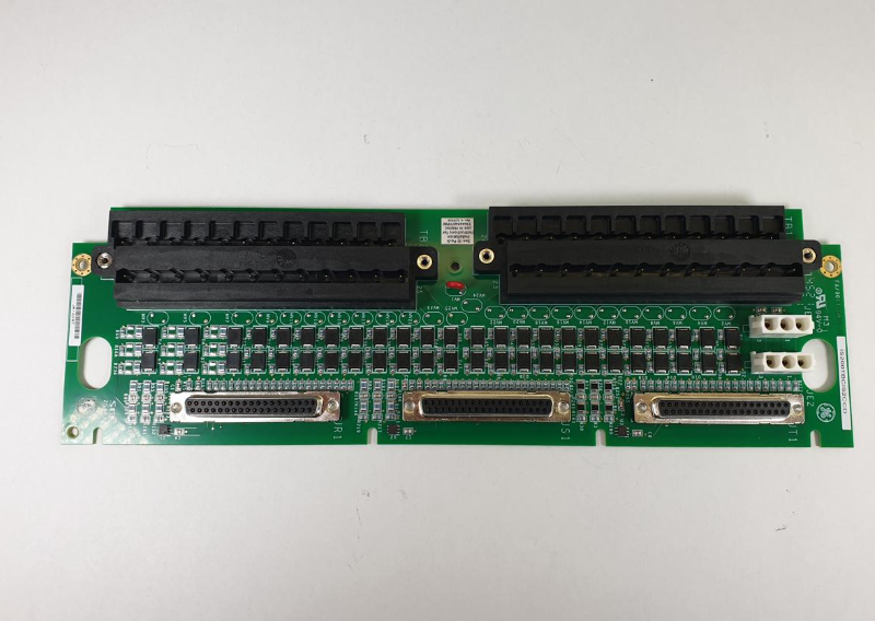 通用电气 Speedtronic Mark VIeS IS200TBCIS2C 是一款分立式输入端子板,设计为 Mark VI 系统的端子板。这是一个非常长的电路板,包含许多电气元件,包括两个用于固定一系列端子的接线端子。这些接线端子中的每一个都有 48 个银色金属端子或 24 个端子。它们被指定为 TB1 和 TB2,上面刻有白色文字的数字。该板还具有五个红色实心电容器,位于小型全球形接线端子之间。其他组件被放置在多个平行行中,每行四个组件位于电路板的中间。
