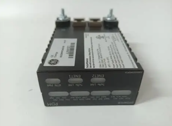 IS220PDIOH1A的前面板包括两个以太网端口的 LED 指示灯、设备的电源指示灯以及“attn”LED。其他 LED 与继电器连接有关。