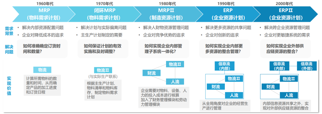 起源于库存管理,ERP经历多个阶段逐渐发展成熟