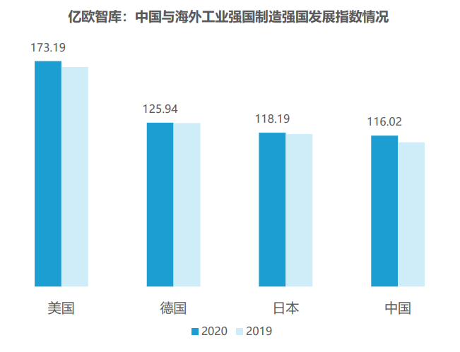 但同时,根据 《2021中国制造强国发展指数报告》,2020年中国制造强国发展指数为116.02,与美国、德国等工业强国相比仍有差距,制造业转型升级空间较大。