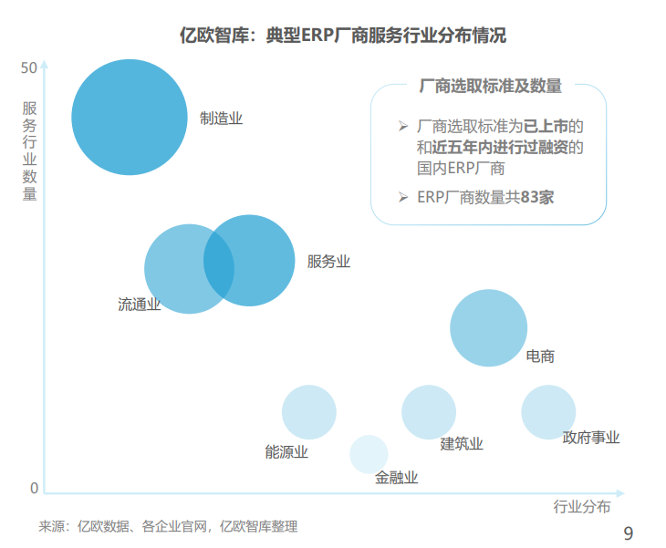 ERP的应用已经由最开始的制造业拓展到能源、流通、服务、金融等各行业领域, 但基于制造企业信息化升级和数字化转型的需求以及国家对智能制造等的支持, 目前制造业仍然是ERP应用的最主要行业领域。