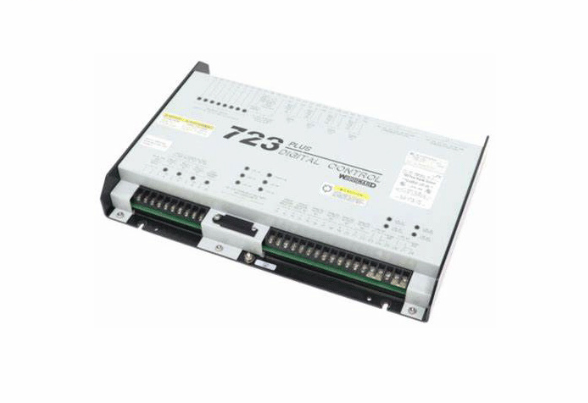 723 数字船用速度控制部件 8280-208 具有许多 I/O。双速感应输入通过磁性拾取器 (MPU) 或接近开关提供冗余速度信号。两条负载分配线支持机械负载分配功能,两个冗余通信端口确保在离合器和装载期间控制装置之间保持正确的控制状态。