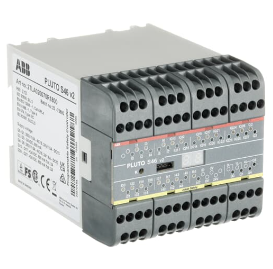 The 2TLA020070R1800 is a safety controller belonging to the S46 v2 series. The controller uses 24 V DC power and has 16 safety outputs and 24 safety inputs with IP20 and IP40 protection levels.