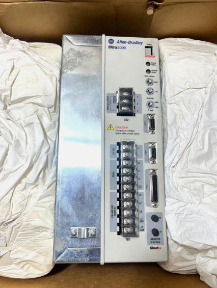 2098-DSD-HV100-SE 是一款 Ultra 3000 伺服驱动器模块。该伺服驱动模块配备串行实时通信系统 (SERCOS) 接口,通过利用光纤电缆连接的双 SERCOS 端口。这使得该驱动器能够直接与安装了 SERCOS 模块的可编程自动化控制器 (PAC) 进行通信。此外,该伺服电机可与 MP 系列、1326AB、F、H、N 和 Y 系列伺服电机耦合。