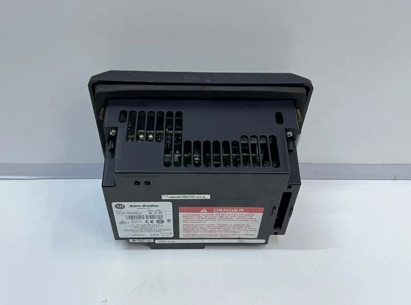 The display is 4.54 inches wide and 3.4 inches thick, with a 320x240 resolution. An 18-32 volt direct current (DC) power supply powers the Allen-Bradley 2711-T6C8L1 unit. The storage capacity of this unit is 240 KB. In addition, the terminal weighs about 4 pounds and measures 14x11x8 inches.