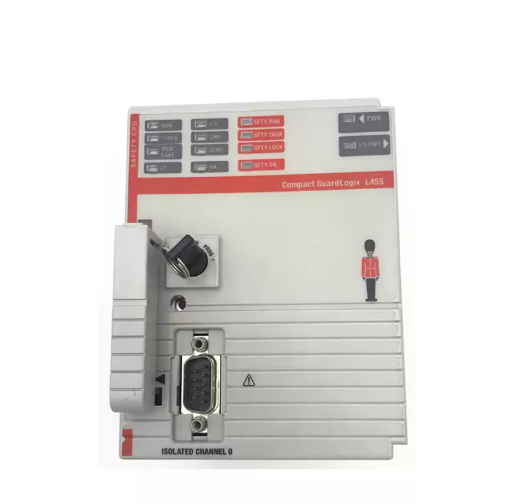 The 1768-L45S is a programmable logic controller (PLC) manufactured by Allen-Bradley. The controller belongs to the 1768 Compact GuardLogix product family. The controller has integrated safety features and is designed to operate in safe processes below Safety Integrity Level (SIL) 3 and performance level (e), where the module safety state is power off. The probability of failure measured in PFD and PFH, system reaction time Settings, and functional verification tests to SIL 3/PLe standards are some of the safety requirements supported by this module. The 1768-L45S Compact GuardLogix controller has the equivalent of an integrated 3.0 MB standard memory (for standard controller functions) and 1.0 MB safe memory (for security applications). It has an embedded RS232 communication port and is designed to communicate with various communication protocols and Settings, such as DF1 point-to-point, DF1 master, DF1 slave, DF1 radio modem, User (channel 0 only), and DH-485. Serial communication is limited to 15.2 meters or 50 feet. As the length of the serial communication cable increases, the baud rate or communication data rate must be configured to a slower speed. The 1768-L45S is capable of communicating with human machine interface (HMI) devices, such as Allen-Bradleys PanelView operator terminals and third-party similar devices. With HMI devices, standard HMI labels can be accessed just like standard controllers. It also has access to security tags and is limited to monitoring functions. The safety controller is designed with a key switch mounted on the front panel of the controller. This key switch is labeled RUN, PROG, and REM. When set to RUN mode, the logic is executed. When set to PROG, the controller allows you to download the program and stop logic execution. When set to REM mode, the controller allows programming and online editing, and continues to execute logic. The 1769-L45S can be installed locally with the 1768 I/O, communication, and dedicated modules. Up to four (4) local modules are supported. Up to three (3) Extended I/O Banks for extended I/O can be installed, of which up to thirty (30) 1769 compact I/O modules can be installed to act as remote I/O modules. The Common Industrial Protocol (CIP) is used to connect secure input and output devices over an Ethernet I/P network. Using this communication protocol, the control and monitoring of the security controller can be established. The controller can also be used with the 1768-ENBT Ethernet communication module (Series A, Revision 3) and the 1768-CNB ControlNet communication module (Series A, Revision 3). The backplane current requirements of the 1768-L45s are 2.1A@24V, the 1768 backplane current output is 5.6A@5.2V, and the 1769 backplane current output is 2.0A@5.2V. The total current output of the 1768 and 1769 backplanes is 7.6A@5.2V. The power consumption of the module is 9.5W and the power consumption is 50.4W. The physical dimensions of the module are 131.6 x 90 x 121.8 mm (5.18 x 3.55 x 4.80 inches) and the weight is 0.45 kg (15.9 ounces).