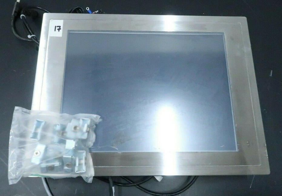 The 61866-15PT has a video transmission frequency capacity of 140 MHz and has a digital and analog DVI and HD-15 VGA video signal connector on the back to provide digital and analog video signals. It has two USB ports on the back and one on the front with a current capacity of 500mA for direct communication with external devices such as keyboards and printers. The 61866-17PT is a panel-mounted industrial display with a DIN rail mounted AC power adapter rated for 100-240 volts AC at a frequency of 47-63 Hertz and a power consumption of 55 watts. It weighs 8.6 kg (19 lb) and has a total dimensions of 356 mm x 452mm x 61mm (14.02 inches x 17.80in inches x 2.4in inches).
