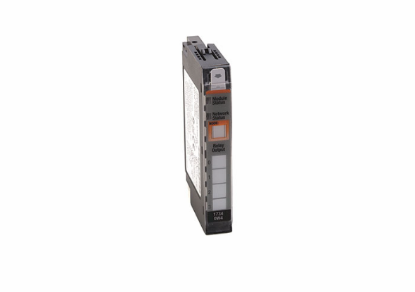 Allen-Bradley 1734-OW4 is a POINT O/I module. The module is a discrete output module with four (4) single pole single throw (SPST) normally open (N.O.) contacts. These contact outputs are non-voltage contacts and support operation at 5-30 VDC; 120 VAC and 250 VAC voltage. Its compact and compact design makes it ideal for implementing distributed I/O architectures and supports mounting to DIN rails and coupling to appropriate terminal bases for connecting signal input power to applicable bases such as 1734-TB, 1734-TBS, 1734-TOP or 1734-TOPS. Install