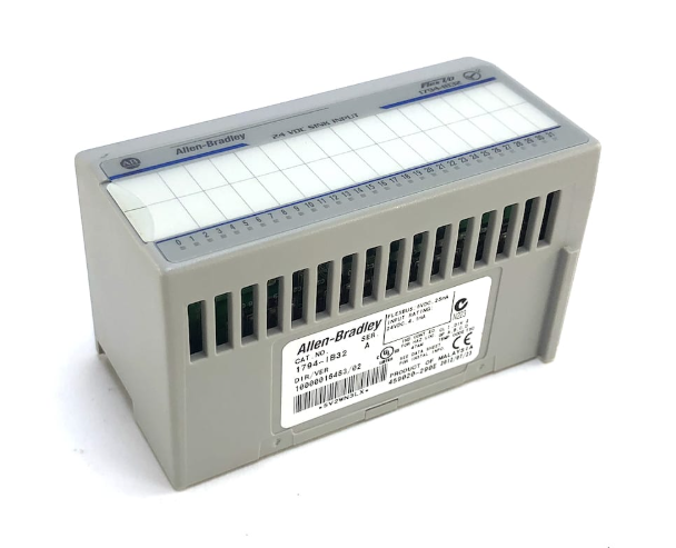The 1794-IB32 is an Allen-Bradley module that belongs to the Flex I/O product family of distributed I/O components. The module is an input interface device that allows the integration of field instrumentation and electrical equipment such as push button devices, limit switches, proximity sensors, float switches, process switches, relay contacts and contactor auxiliary contacts into any automatic control system or process.