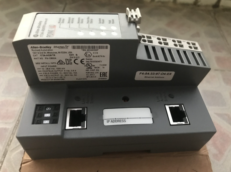 The Allen-Bradley 1734-AENTR I/O is a 2-port Ethernet adapter that provides Ethernet /IP network connectivity at rates of 10 to 100 Mbits/s, half duplex or full duplex. It comes with 2 Category 5 RJ-45 connector ports for pass-through to support ring or Daisy chain/linear networks, as well as existing tree and star network topologies. These Ethernet ports are configured as embedded switches. This adapter is part of the 1734 Series 2-port communication adapter for POINT I/O modules. It uses messages encapsulated in standard TCP/UDP/IP protocols. Category 5 twisted pair cables are used for interfaces. Network scheduling and routing tables are not required. In addition, the 1734-AENTR is capable of supporting connections from multiple controllers simultaneously. The 1734-AENTR adapter is mounted vertically on the DIN rail. It comes with a pen push-finger wheel switch for setting network addresses. Other ways to set up the Internet protocol address for the network include retrieving the IP address from non-volatile memory and using a DHCP server (setting the module to enable DHCP). To avoid unauthorized control or loss of control, assign a fixed IP address to the I/O adapter. If you use the DHCP utility, make sure to configure it with the same IP address as the adapter.