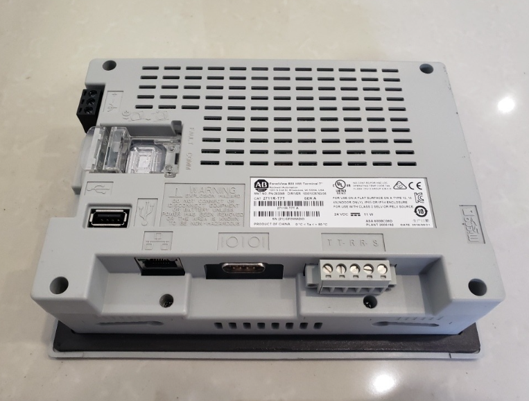 彩色透射式 TFT 矩阵 LCD 触摸屏尺寸为 7 英寸,具有 65K 色,WVGA 分辨率为 800 x 480。它采用宽屏格式,显示区域为 6.05 x 3.41 英寸。它还具有 LED 背光,显示屏在 40,000 摄氏度下的最低使用寿命为 5 小时或 25 年。该终端配备 256 MB 内部存储和 256 MB DDR RAM,处理器具有 800 MHz 的 CPU 速度。2711R-T7T 采用电阻式触摸输入,并配有一个用于额外内存的 microSD 插槽。如果用户计划使用 microSD 卡,请确保使用工业级卡。它与高达 10 GB 的 32 类 SDHC microSD 卡兼容。终端的 USB 2.0 和以太网 (10/100 Mbps) 端口允许用户连接到不同的网络。该端子还具有单独的 RS-232 和 RS-422/RS-485 连接器以及带电池的实时时钟。2711R-T7T 尺寸为 5.67 x 7.75 x 2.13 英寸,重 0.651 千克或 1.44 磅。