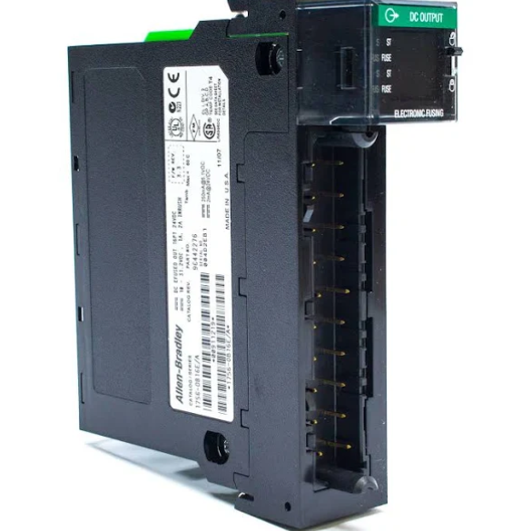 Allen-Bradley's 1756-OV16E ControlLogix digital DC output module is an output module in the ControlLogix digital DC output module family, with 16 filling current and electronic fuse outputs. Located in the chassis slot of the 1756 ControlLogix device. It has a pilot rating of 1A (DC-13/SR) and a rated operating voltage of 10-30V DC. The 1756-OV16E has a nominal signal delay time of 75μs (OFF to ON) and 360μs (ON to OFF), with a maximum delay time of 1ms for OFF to ON and ON to OFF. It has backplane ratings of 2mA (5.1V) and 210mA (24V), respectively, and 1.12W of total power. In the OFF state, the 1756-OV16E circuit has a maximum power consumption of 6.72W and a maximum leakage current of 1mA at each point. 1756-OV16E Maximum current at each output point