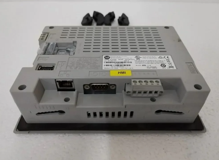 The 2711R-T10T features simulated resistive surface touch and LED backlight for up to 40,000 hours of standby time. It has a battery backed up real-time clock and has a battery life of 77 years when used at temperatures below 5 °F. It also has 256 MB of factory-built memory for storing user Settings and application parameters. The 2711R-T10T also comes with a 256MB synchronous DRAM for application processes with a processor speed of 800MHz and is compatible with MicroLogix and Micro 800 controllers. It also supports a USB 2.0 host port for connecting external peripherals and a micro SD card slot for up to 32 GB of external memory. The 2711R-T10T measures 8.9 x 11.3 x 2.2 inches and weighs about 10 pounds. It comes with a T4 temperature code for a functional temperature of 0-50 °C (32-122 °F), with NEMA/UL Type 4X, 12, 13 and IP65 housing type grades and front shield protection. This PanelView uses 24 VDC power supply. The most common series is Series A. The PanelView 800 product line consists of a set of panel mounted display units with a keyboard or touch screen for user input methods. These HMI terminals are available in 4 ", 7 "and 10" display sizes.
