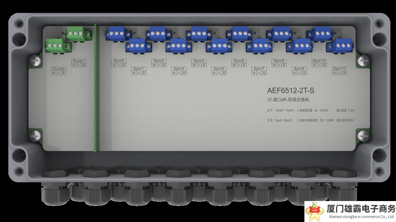 AEF6512是带有12个APL Spur端口的APL现场交换机。AEF6512及所连接的APL仪表所需电能均通过APL 主干(Trunk)回路获取,无需额外的配电电源。AEF6512的APL 分支(Spur)端口在和APL仪表通信的同时为APL仪表提供电能,每个分支都具备过流、欠压、过压和短路保护功能。