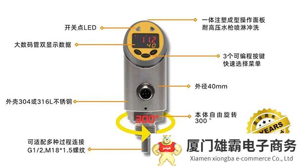 传感器的用户体验经过精心设计,旨在提供最大的便利性和安全性。它的按键锁功能可以有效预防误操作,而无操作自动退出的设计则提高了设备的安全性。此外,传感器支持灵活设置模拟量的起始值和终点值,还有多种模式可供选择,包括常开、常闭、NPN、PNP、磁滞模式和窗口模式,使其能够满足不同用户的需求。