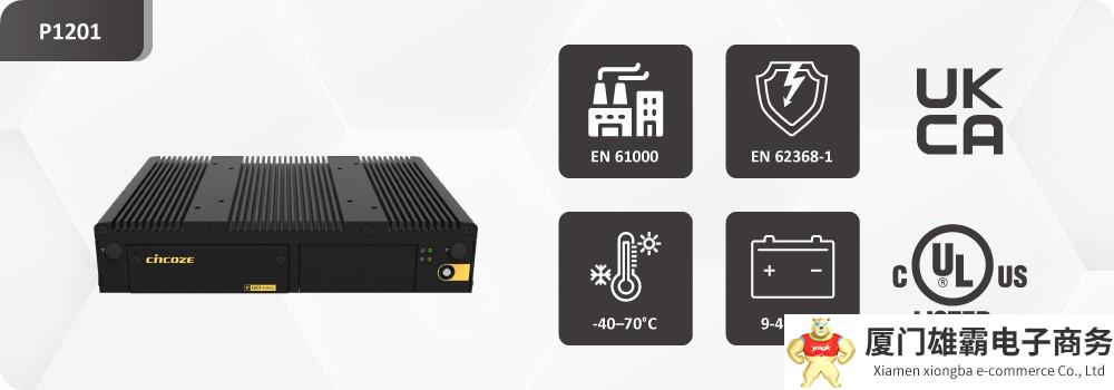 P1201搭载了Intel® Elkhart Lake平台Atom® x6425E四核心处理器,同时至高支援3200MHz的DDR4 32GB 记忆体。原生的I/O(1 GbE LAN、USB3.2 Gen2、COM和DIO)即可满足多种的应用要求,并透过内建的M.2 Key E插槽支援WIFI 6、Intel CNVi模组和蓝牙模组,以及Mini PCIe插槽支援GNSS、4G模组,实现了对无线传输的完整覆盖。P1201虽作为一台节能型的电脑,对于其品质的要求是十分严格,除了拥有宽温 ( -40°C - 70°C ) 宽压 ( 9 - 48VDC ) 的适应性外,还通过如正弦振动 (1G)、随机振动(5G) 与耐冲击 (50G) 等多种震动与冲击测试以及工业环境的EMC测试标准(EN61000-6-2 及 EN61000-6-4),同时还取得了UL的安全认证。透过各式的测试及认证标准,确保了P1201在各种严苛的工业环境中依然能够稳定且可靠的运作。