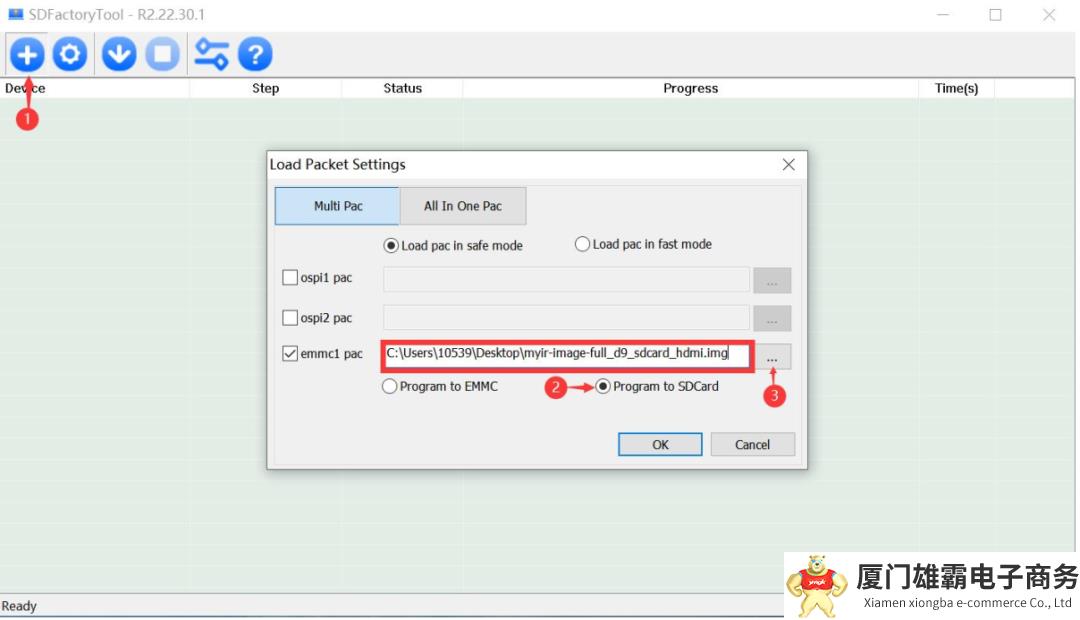 官方资料给出了两种方法:SDFactoryTool 烧录、制作 SD 卡烧录。方法一:SDFactoryTool 烧录也就是使用SDFactoryTool工具,通过USB进行烧录。通过USB将电脑和开发板连接,选择启动模式,将拨码开关拨到 USB 下载模式。准备烧录镜像,启动 SDFactoryTool 工具进行下载即可。