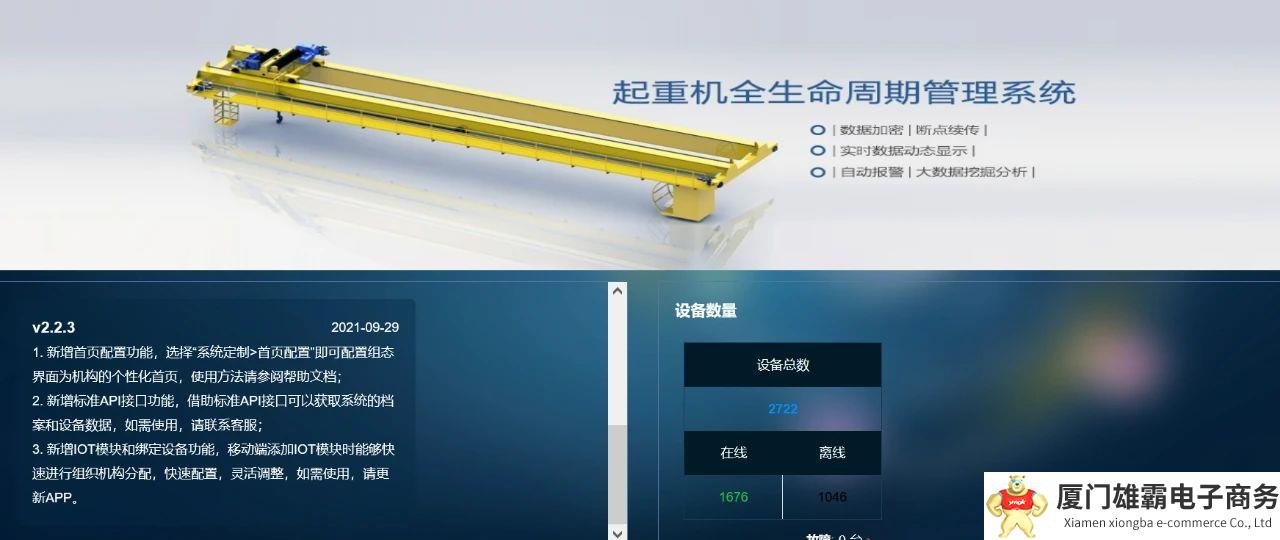起重机智能运维服务的创新以设备厂家技术人员和终端用户的实际需求为出发点,整个系统包含九大部分:控制层(PLC)、远程通讯站(远程I/O模块)、上位机显示单元(触摸屏)、驱动器层(变频器)、传感器层(各种限位及传感器)、操作层(主要是主令器+按钮盒+遥控器等)、物联网模块、云服务器、应用终端等。实现了安全预警、维保提醒、异常状态及非正常操作记录存档、关键数据统计报表等功能。让运维工作更加智能化和高效化,能够为用户节约检修时间、降低检修成本、降低设备故障停机率、提升生产效率。