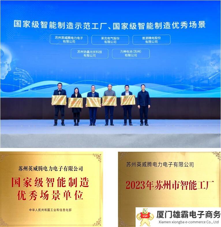 2024年1月24日,苏州高新区(虎丘区)智能制造产业协会举办苏州高新区智改数转网联生态链促进大会,苏州英威腾电力电子有限公司应邀参加,并荣获“国家级智能制造优秀场景单位”、 “2023年苏州市智能工厂”的牌匾。