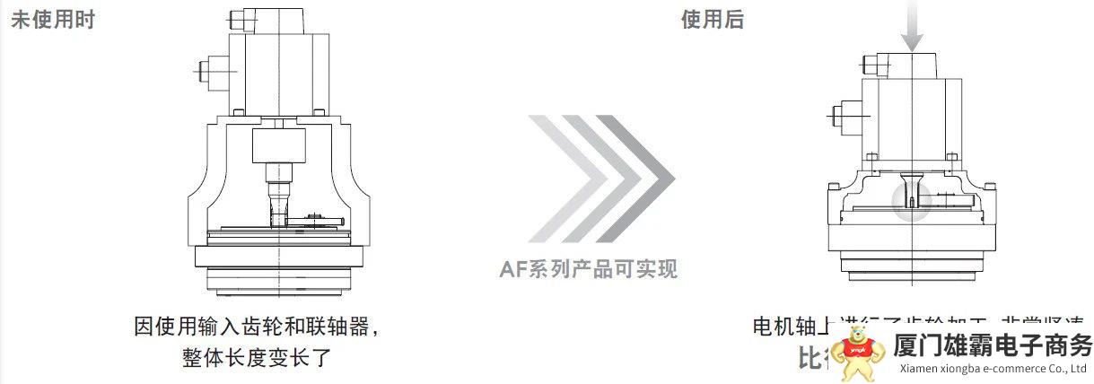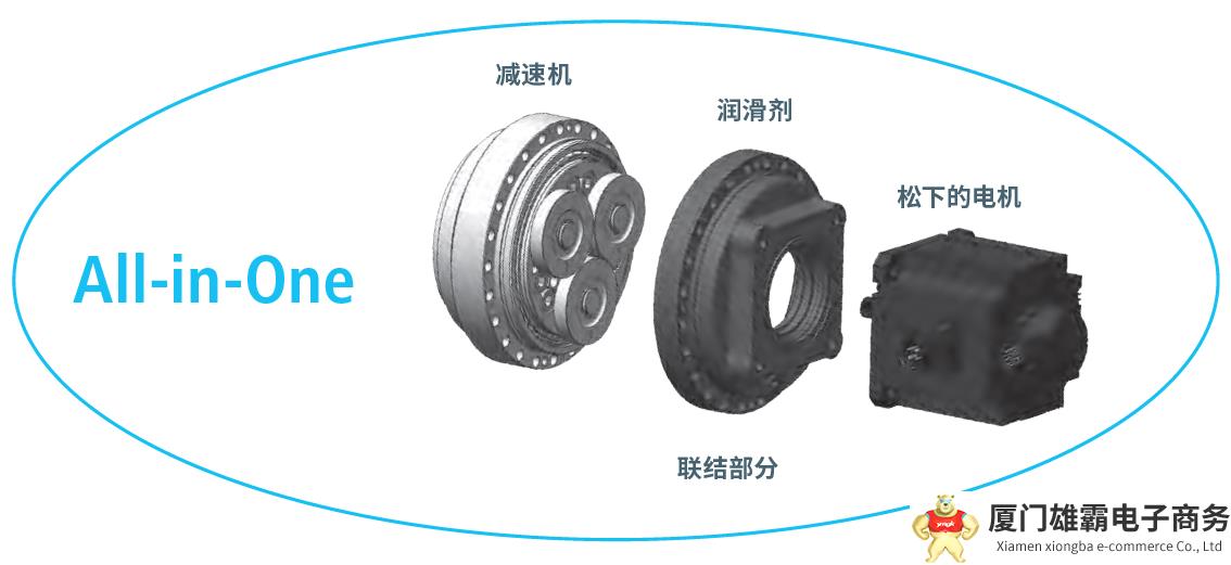 纳博特斯克为了尽可能帮助用户加快实现工厂自动化,研发了预封入润滑脂的【紧凑型执行器AF系列】,其核心组成是精密减速机RV™和松下电器产业株式会社的伺服电机。