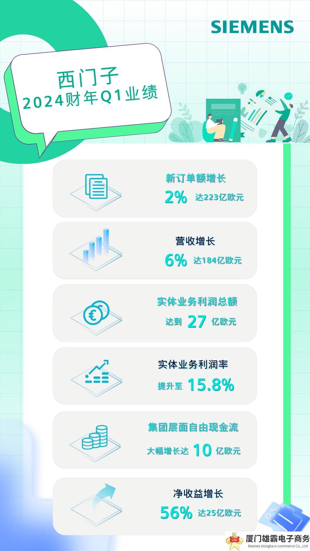 西门子2024财年第一季度(截至2023年12月31日)业绩强劲,实现成功开局。实体业务利润达到27亿欧元,几乎全线实体业务利润均有所增长,创下财年首季度的历史新高。在此基础上,西门子确认2024财年的业绩目标指引。正如西门子于2023年11月宣布,公司将在近期启动新的股票回购计划,将在最长五年时间内完成总额高达60亿欧元的股票回购。