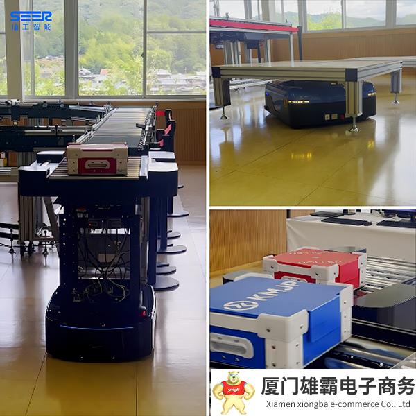 此次,KMJP 选择与仙工智能合作,旨在进一步提升自身生产实力,通过仙工智能 AMB 底盘上接辊筒机构,实现高效对接输送设备,并配合旋转顶升搬运机器人,助力物料搬运系统升级。