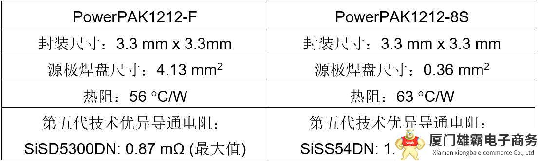 日前,威世科技Vishay Intertechnology, Inc.(NYSE 股市代号:VSH)宣布,推出多功能新型30V n沟道TrenchFET® 第五代功率MOSFET---SiSD5300DN,进一步提高工业、计算机、消费电子和通信应用的功率密度,增强热性能。Vishay Siliconix SiSD5300DN采用源极倒装技术3.3 mm x 3.3 mm PowerPAK® 1212-F封装,10V栅极电压条件下导通电阻仅为0.71 m,导通电阻与栅极电荷乘积,即开关应用中MOSFET关键的优值系数(FOM)为42 m*nC,达到业内先进水平。