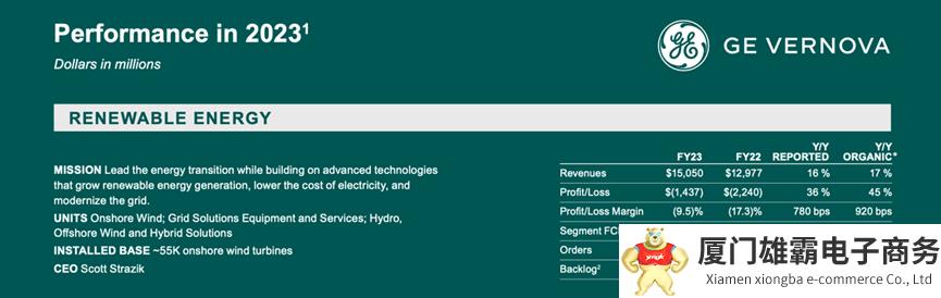 很显然,在不断增长的能源转型需求以及持续的价格和生产力的支持下,GE可再生能源的运营转型在2023年取得了“可观的改善”,预计2024年这些业务将进一步加速。