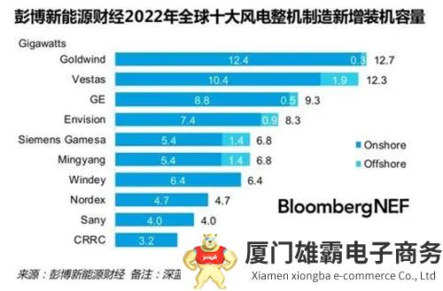 当下,全球整机商格局正在发生变化。在彭博新能源财经发布的2022年全球风电新增装机排名中,金风科技跃升至全球第一,维斯塔斯跌至第二名;GE由2021年的全球新增第五上升至全球第三;西门子歌美飒则被中国整机商远景能源超越,由2021年的全球第三跌至2022年第五,国际三大整机巨头的业绩走向正在分化。