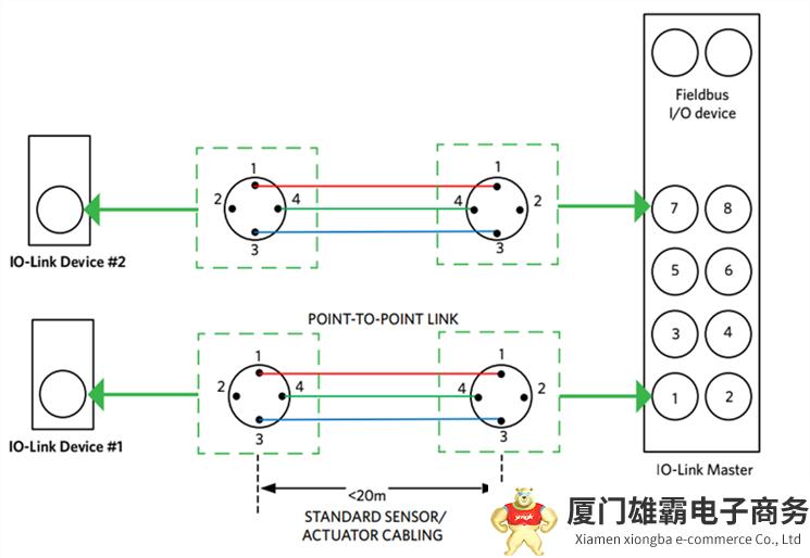 IO-Link是一种串行数字点对点协议,其中每个从站都连接到IO-Link主站上的一个物理端口。该协议不需要复杂的寻址,采用标准化连接器(通常是M8或M12)和非屏蔽三线电缆,安装简单、成本低。