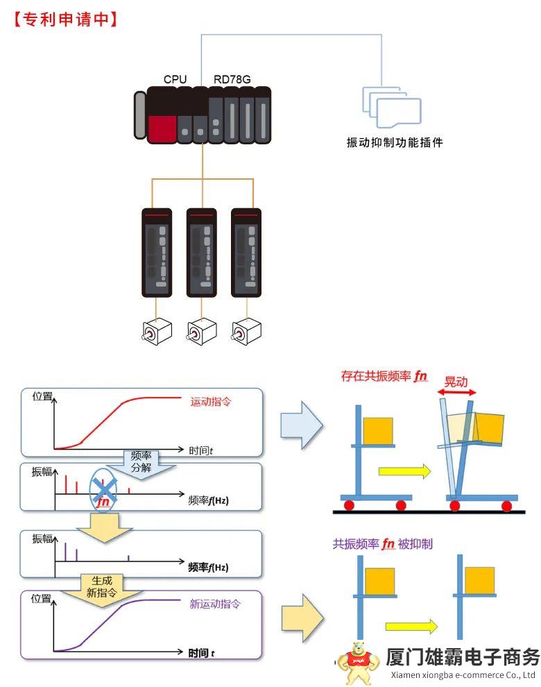 三菱电机研发的振动抑制功能,可根据输入的共振频率等运动参数,自动计算出去除该振动频率分量的运动曲线,从而实现振动抑制。