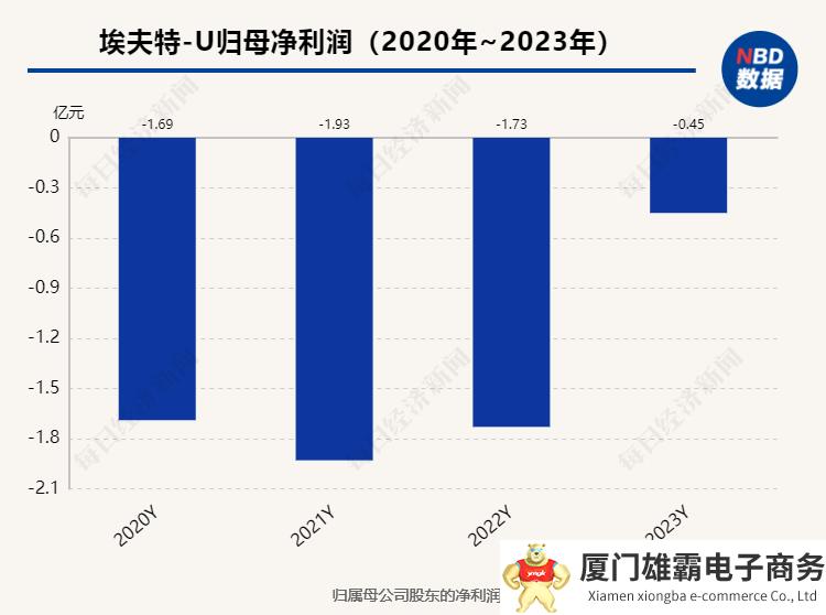 从2020年上市到2023年,埃夫特一直未摆脱亏损状态。2020年至2022年,埃夫特实现归母净利润分别为-1.69亿元、-1.93亿元、-1.73亿元。2023年,公司亏损收窄,预计净亏损0.45亿元,亏损同比减少73.88%。
