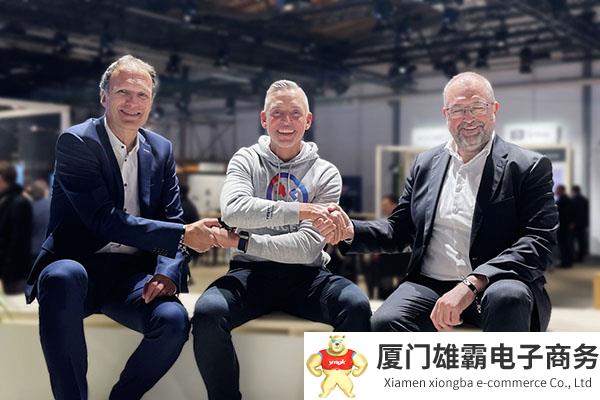 从左至右,多米尼克·雷辛(康佳特CEO),Steffen Winkler(博世力士乐自动化与电气化解决方案业务部销售总监), 康拉德·加哈默(康佳特CTO/COO), 握手合作