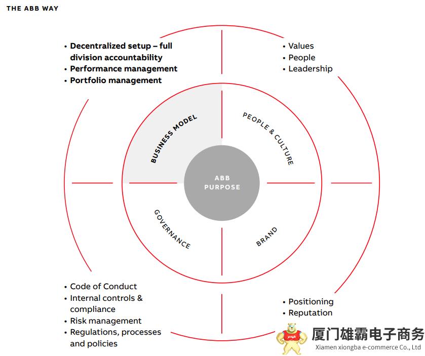 ABB的价值创造模型全面总结了公司为整个价值链中所有利益相关者(包括客户、员工、投资者和供应商)创造的综合价值。该模型概述了ABB创造价值所需的投入,并说明了集团如何通过其垂直化运营模式将这些投入转化为产出和成果。