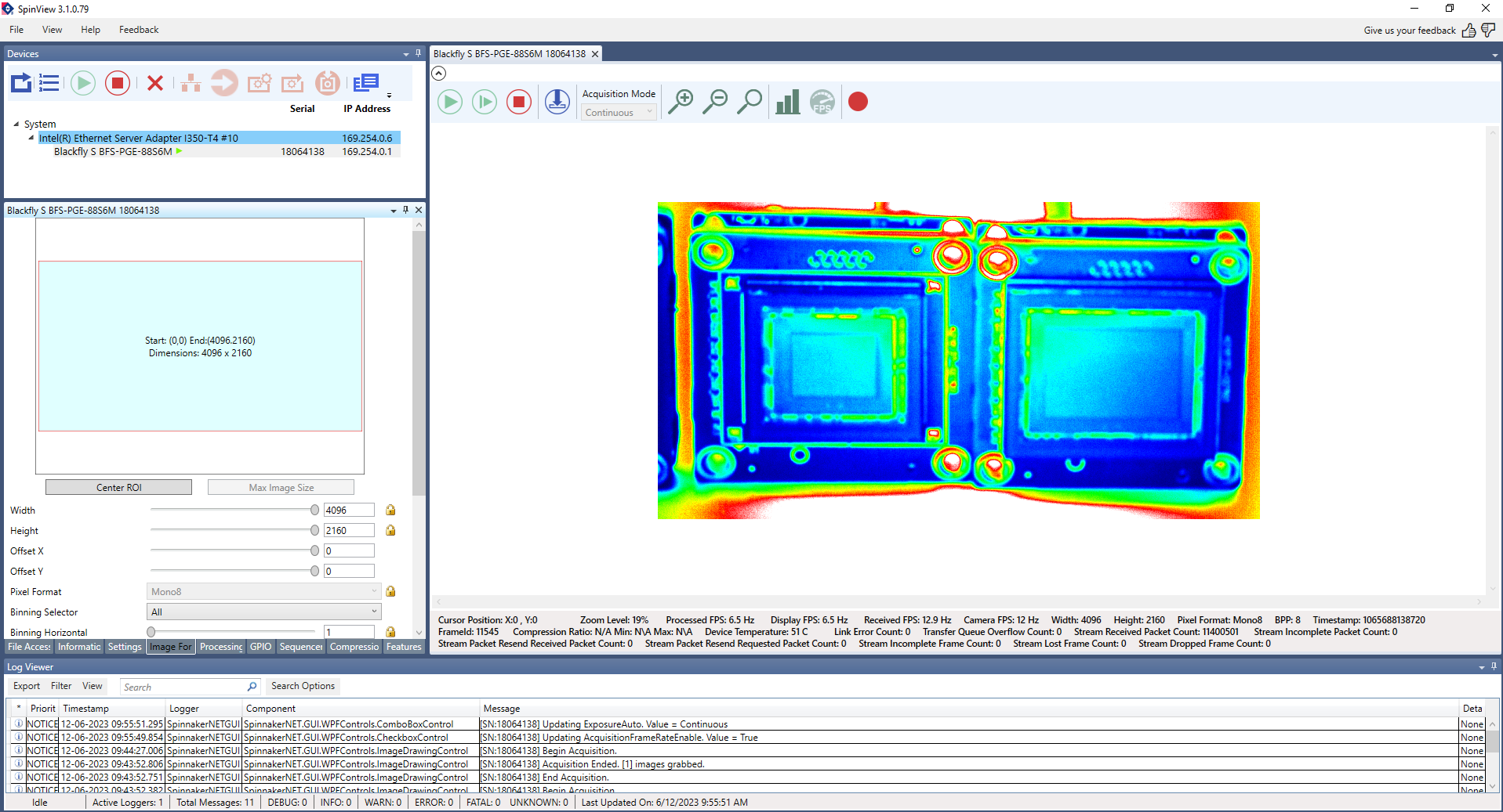 SpinView 提供的各种功能使 Teledyne 相机上的图像采集成为一项简单的任务。通过利用 Spinnaker 的简单框架,用户能够在同一天内编写概念验证演示。为了确保无缝操作,用户在渲染显示时可以利用计算机处理器 (CPU) 或显卡 (GPU)。这样,Spinnaker 将适应现有的硬件,并确保无论使用何种系统,都能无缝运行。