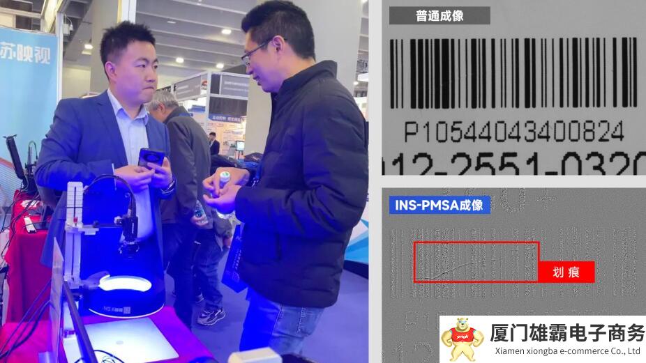 搭载线扫相机,可以连续成像,不间断检测圆柱表面或超长超大物体,加快检测节拍。现场演示了包蓝膜电芯的外观缺陷检测,展示2.5D视觉系统捕获细微缺陷的超高能力,可以捕获肉眼不可见的微小划痕。