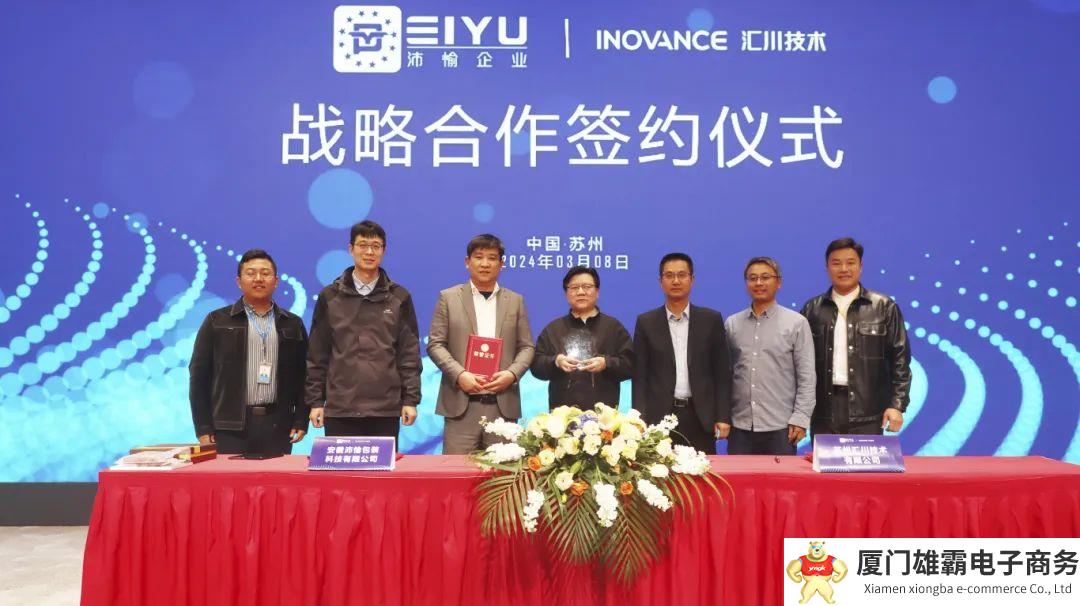 3月8日,汇川技术与安徽沛愉企业集团(以下简称“沛愉企业”)正式签署战略合作协议,双方将共同致力于推动包装机械自动化领域的发展与创新。汇川技术通用事业部先进SBU总监申平煜、沛愉企业董事长彭跃猛出席签约活动。