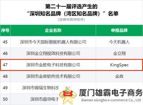 3月5日,深圳知名品牌评价委员会召开第二十一届“深圳知名品牌”评审会议,共计113个品牌入选新一届深圳知名品牌。新一届榜单已经尘埃落定,金胜电子旗下品牌“KingSpec”荣获“深圳知名品牌”称号!