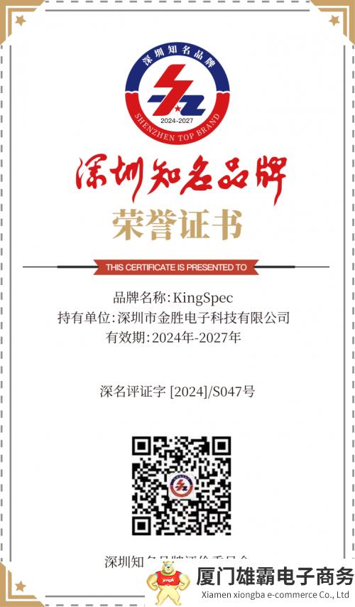在日益紧张的贸易形势与激烈的行业竞争中,金胜电子将继续秉承着“金品质,胜天下”的发展原则与方针,将产品品质与客户的发展放在首位,为全球客户提供更加优质的存储产品和服务。这也是支撑“KingSpec”获评深圳知名品牌不可或缺的部分。
