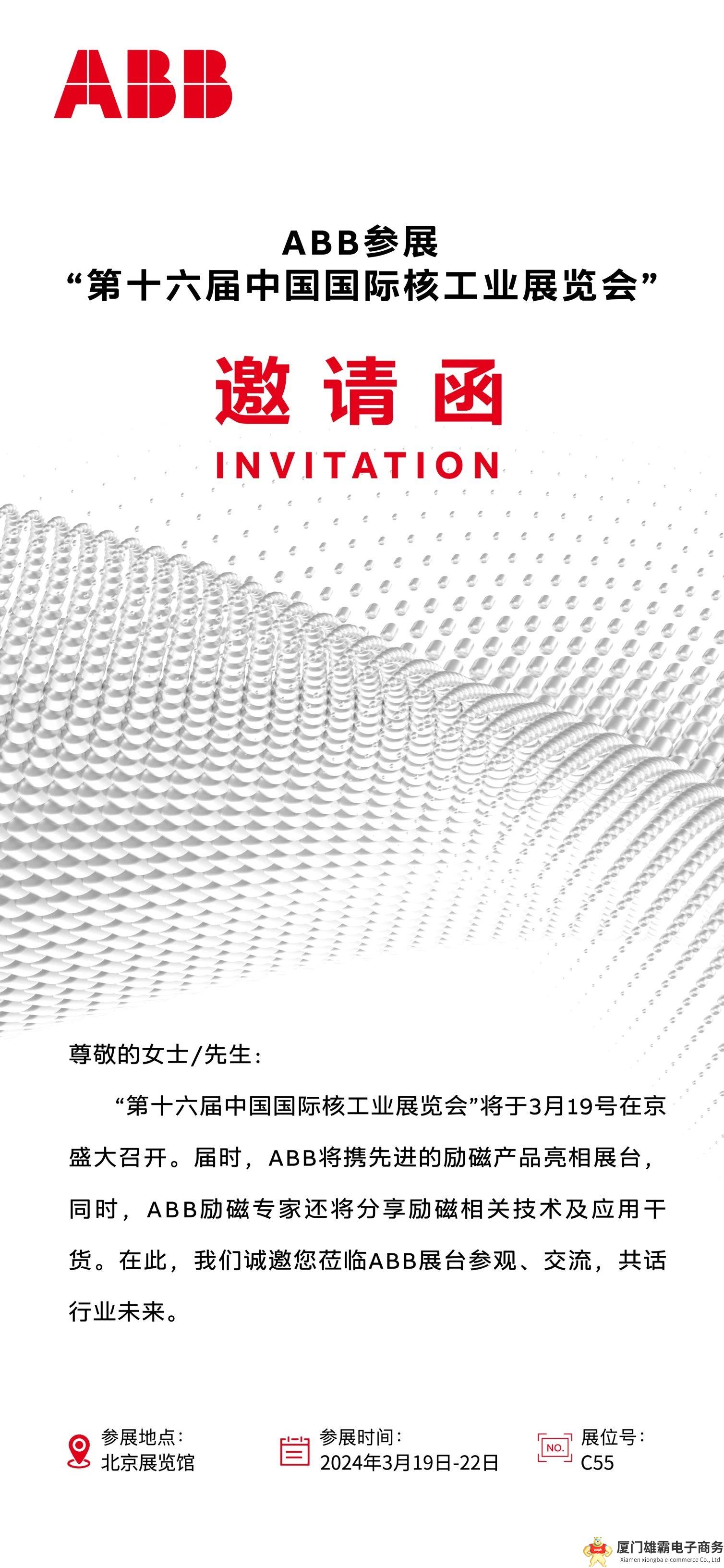 “第十六届中国国际核工业展览会”将于3月19号在京盛大召开。届时,ABB将携先进的励磁产品亮相展台,同时,ABB励磁专家还将分享励磁相关技术及应用干货。在此,我们诚邀您莅临ABB展台参观、交流,共话行业未来。