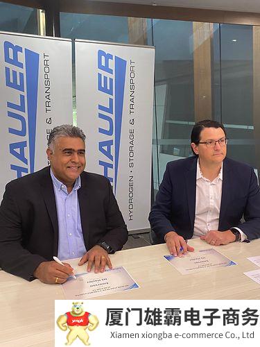艾默生澳洲副总裁 Boris Gabin(左)与 H2 Hauler 首席执行官 Tyson Cooney 签署氢能移动出行技术合作协议。