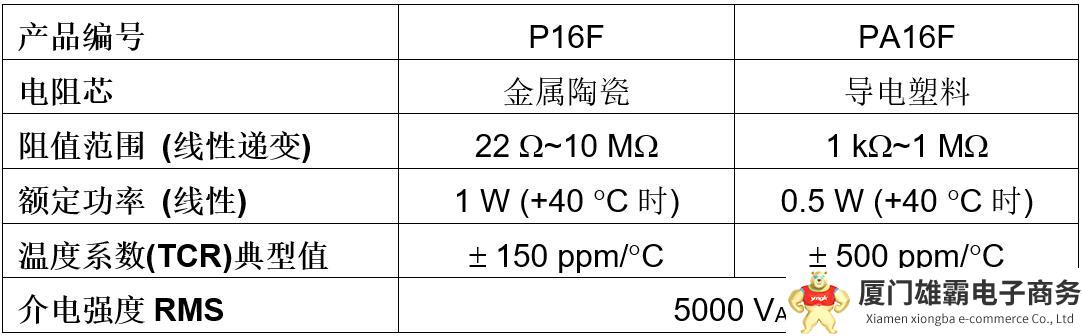 PA16F采用导电塑料电阻芯,适用于音频应用,P16F金属陶瓷旋钮电位器适用于工业电机驱动、焊接设备、暖通空调和照明系统以及控制面板。器件全密封符合IP67标准,能够在极端环境条件下可靠工作。