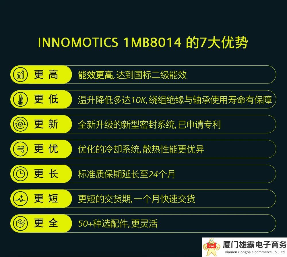 INNOMOTICS 1MB8014具有高效节能、安全稳定、可靠耐用的特点。可适用于搅拌、研磨、筛分、皮带输送以及风机驱动等各类应用、以及食品饮料生产、木材加工、金属切削、涂料制造以及新能源电池等行业。在确保产线作业环境安全的基础上,还能够有效减少能源消耗、降低碳排放。