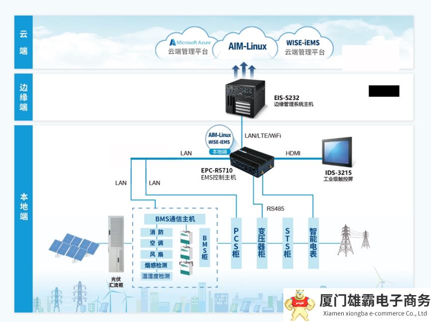 面向上述需求,研华提供贯穿了“端-边-云”的“软+硬”完整解决方案。其中,基于NXP I.MX 8M PLUS平台EPC-R5710工控机作为EMS控制器,一方面直接负责储能系统的控制策略,另一方面还监控系统运行中的故障异常,起到及时快速保护设备、保障安全性的重要作用。