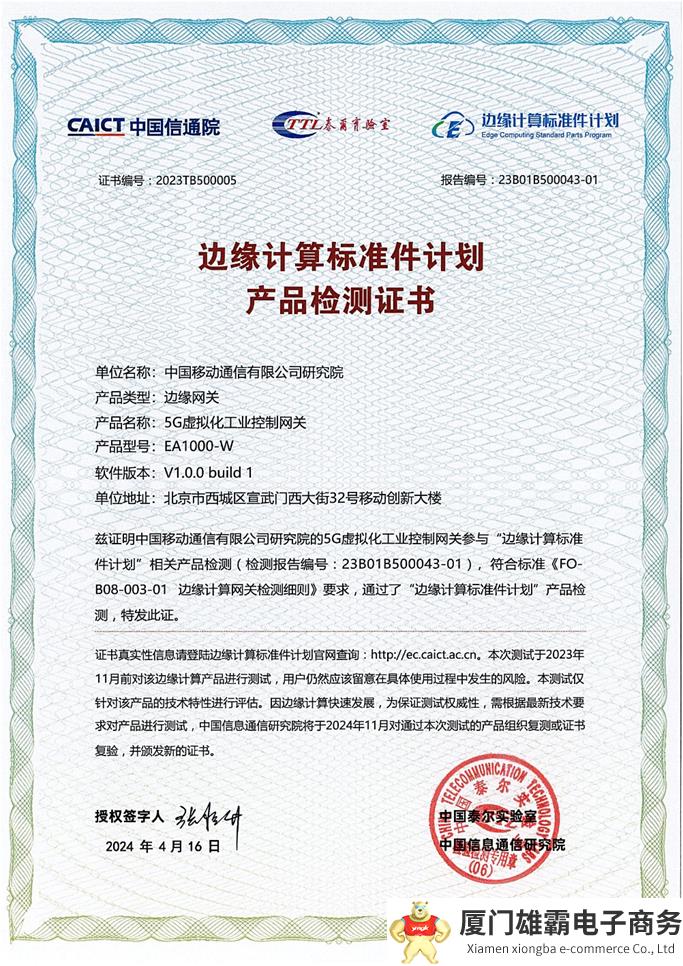 中国移动研究院自主研发的5G虚拟化工业控制网关顺利通过本次“边缘计算标准件计划”产品测试,并且在多个领域实际应用部署和持续稳定运行,助力各行业企业应用升级,推动数字化建设落地。